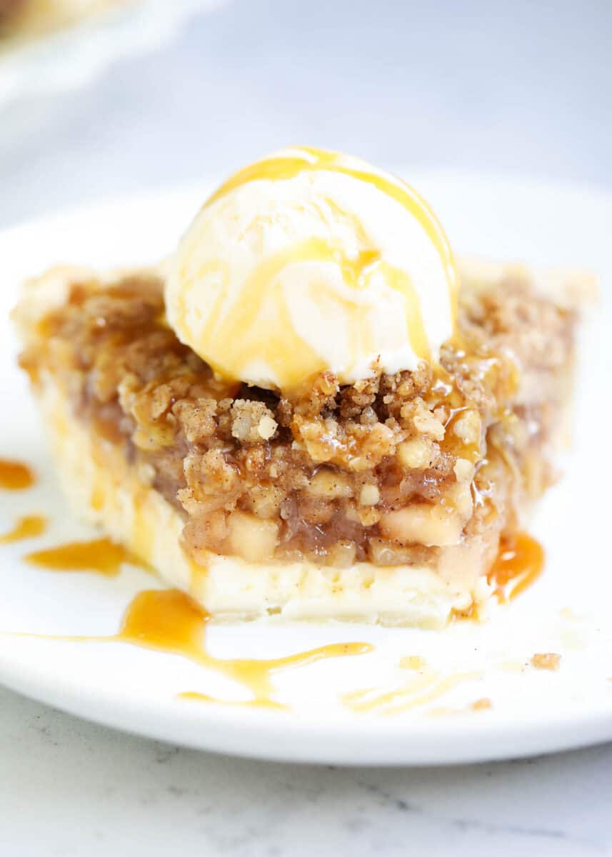 This apple crisp is made with a fruit filling sprinkled with a streusel topping then baked until golden in the oven. So delicious!