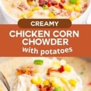 The chicken and corn chowder is easy to make in one pot with shredded chicken, potatoes, bacon and corn in a creamy broth. It’s hearty soup full of savory flavors!
