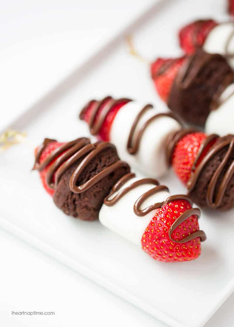 I have to say one of my all time favorite combos is chocolate and strawberries. These dessert skewers are one of my top ways to pair the two, as well as my chocolate covered strawberries and brownie strawberry trifle. Seriously delicious!