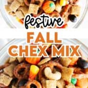 Sweet and salty fall Chex mix is the ultimate seasonal snack. It’s irresistible with candy corn, M&M’s, pretzels, cashews and Chex coated in a brown sugar glaze.