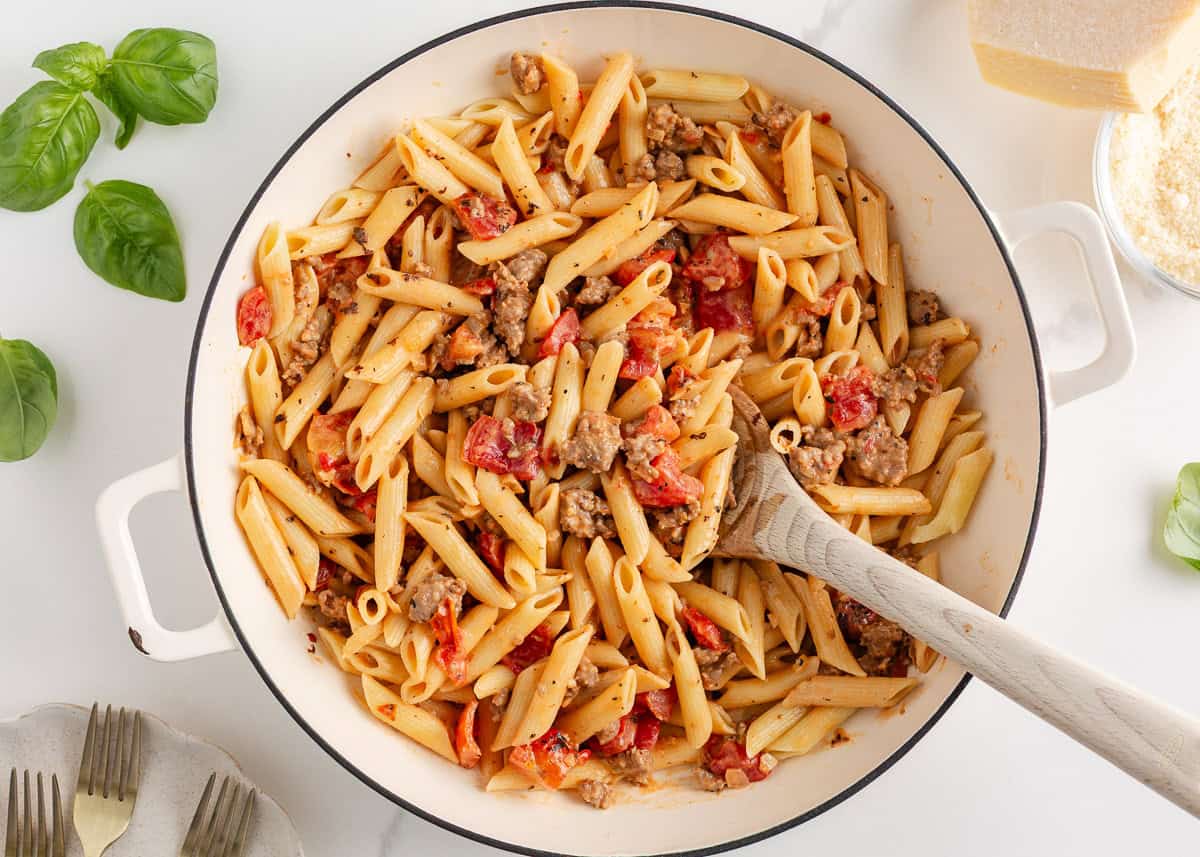 Made with savory Italian sausage, fire-roasted tomatoes, and a creamy sauce, this dish balances smoky, hearty, and creamy in every bite. Whenever you’re craving a warm, hearty meal, pasta with sausage is always a good choice!