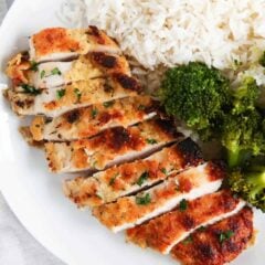 This is my go-to healthy and quick meal on busy nights. Everyone in our family loves this chicken, I usually use my air fryer for this version and pair it with white rice and asparagus. So YUMMY!