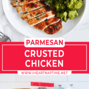 The beauty of this parmesan crusted chicken recipe is that it so versatile and pairs well with so many side dishes for a complete weeknight dinner.
