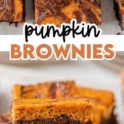 We tested this recipe 4 different ways and this was definitely the best version. It’s easy to make with a boxed brownie mix, real pumpkin, and pumpkin pie spice, these brownies are both decadent and festive, making them great for everything from Halloween to your Thanksgiving dessert tray!