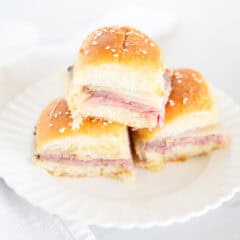 They’re easy to make, perfectly portable, and always a hit! Soft Hawaiian rolls are stuffed with sliced roast beef and gooey cheese, then brushed with a seasoned butter sauce and baked until warm and golden. They’re equally as good for potlucks as they are for easy weeknight meals!