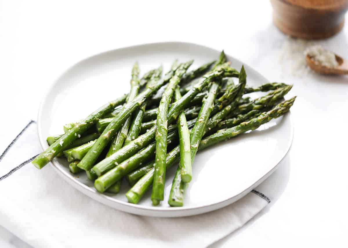 Oven roasted asparagus is one of my absolute favorite vegetables! I even converted my asparagus-hating husband into liking it. Keep the seasoning simple with salt and pepper or get fancy with a drizzle of balsamic glaze and freshly shaved Parmesan.