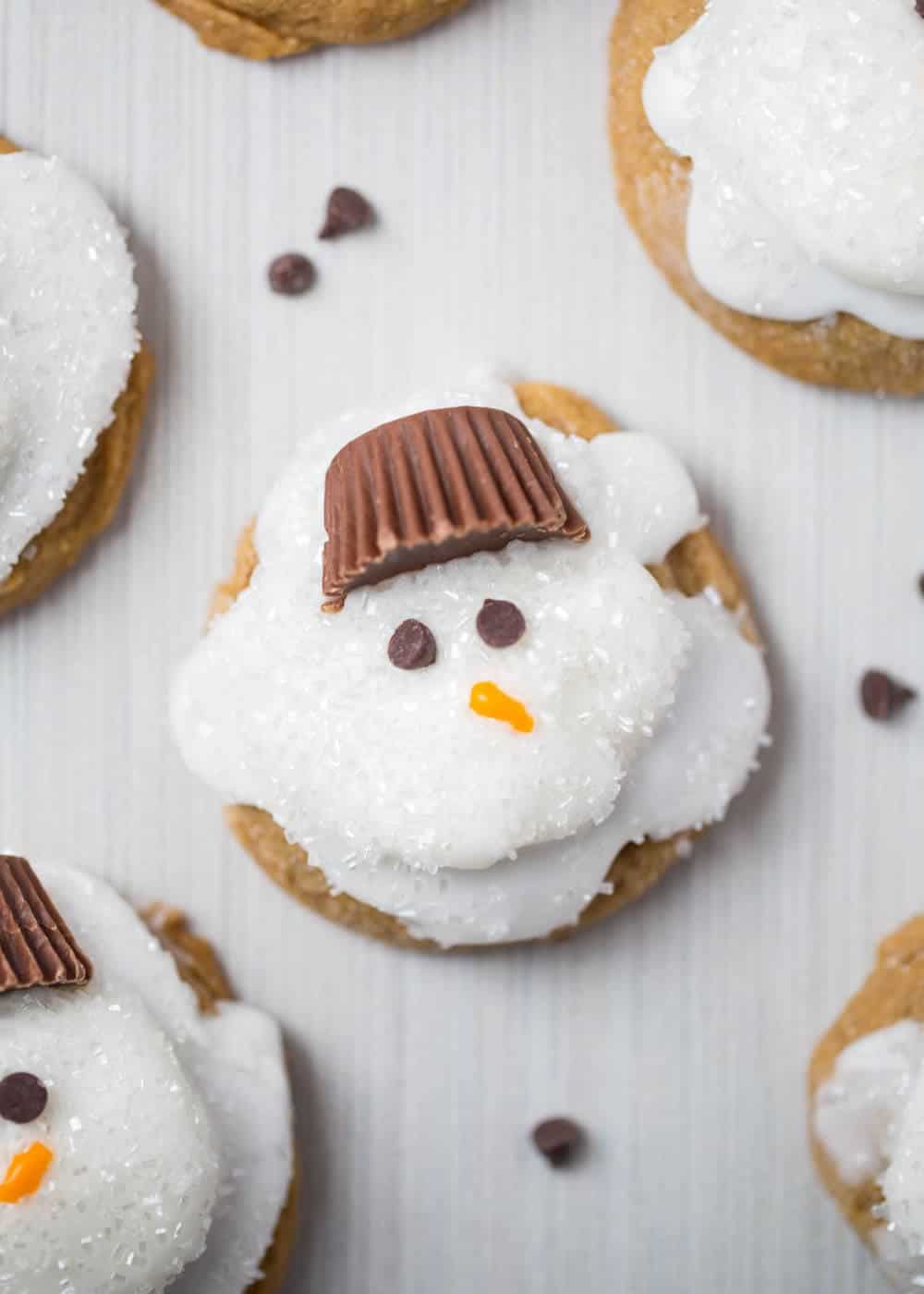 If you’re looking for fun holiday baking recipes to enjoy with your kids, these easy melted snowman cookies are one of our favorite Christmas cookies! They taste similar to gingerbread man cookies but with the adorable melted snowman face on top.